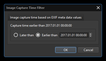 The Capture Time Filter allows you to find images which were captured in a specific time period by looking at the image metadata.