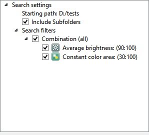 Each search filter (such as Average brightness, or Constant color area in the example above) can be separately adjusted by double clicking on the appropriate description text
