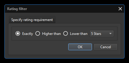 Rating Filter allows to select files based on the user specified rating.